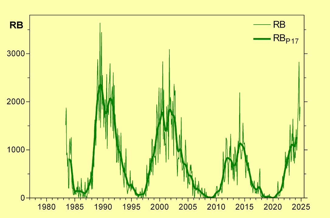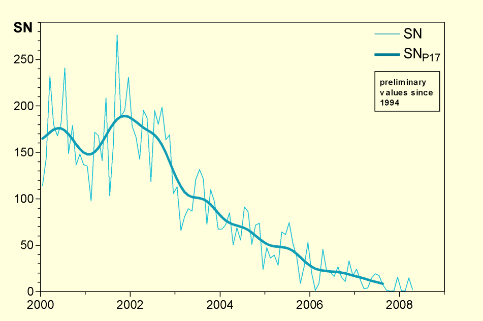 network of the VdS Solar Section (narrow line), additionally smoothed