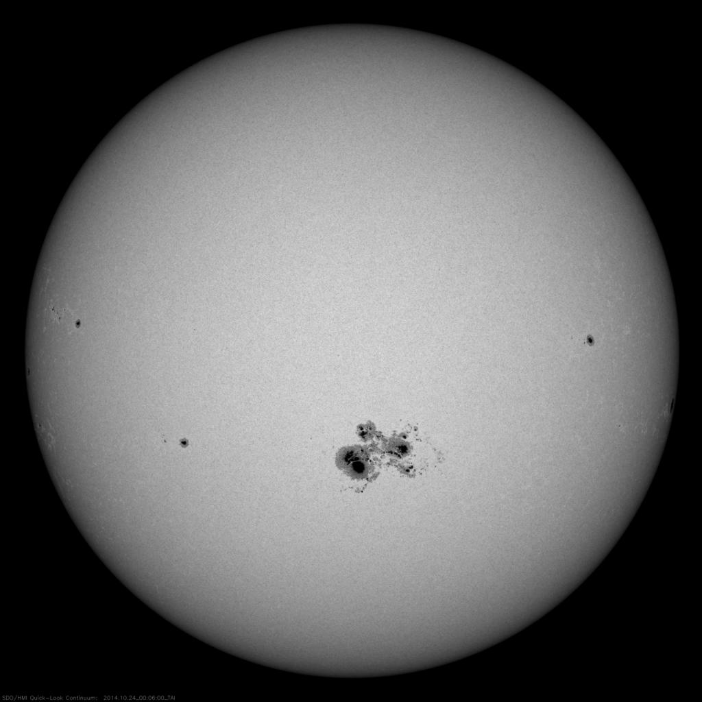 die im Oktober 2014 als Einzelfleck für viele Beobachter mit dem bloßen Auge sichtbar war: A = 1.