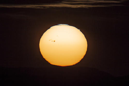Das Bild oben zeigt solche Sonnenflecken vom 8. Januar 2014, die ohne Hilfsmittel bei Sonnenuntergang sichtbar waren. Ganz ähnlich entstanden übrigens viele historische Beobachtungen vor der Erfindung des Teleskops.
