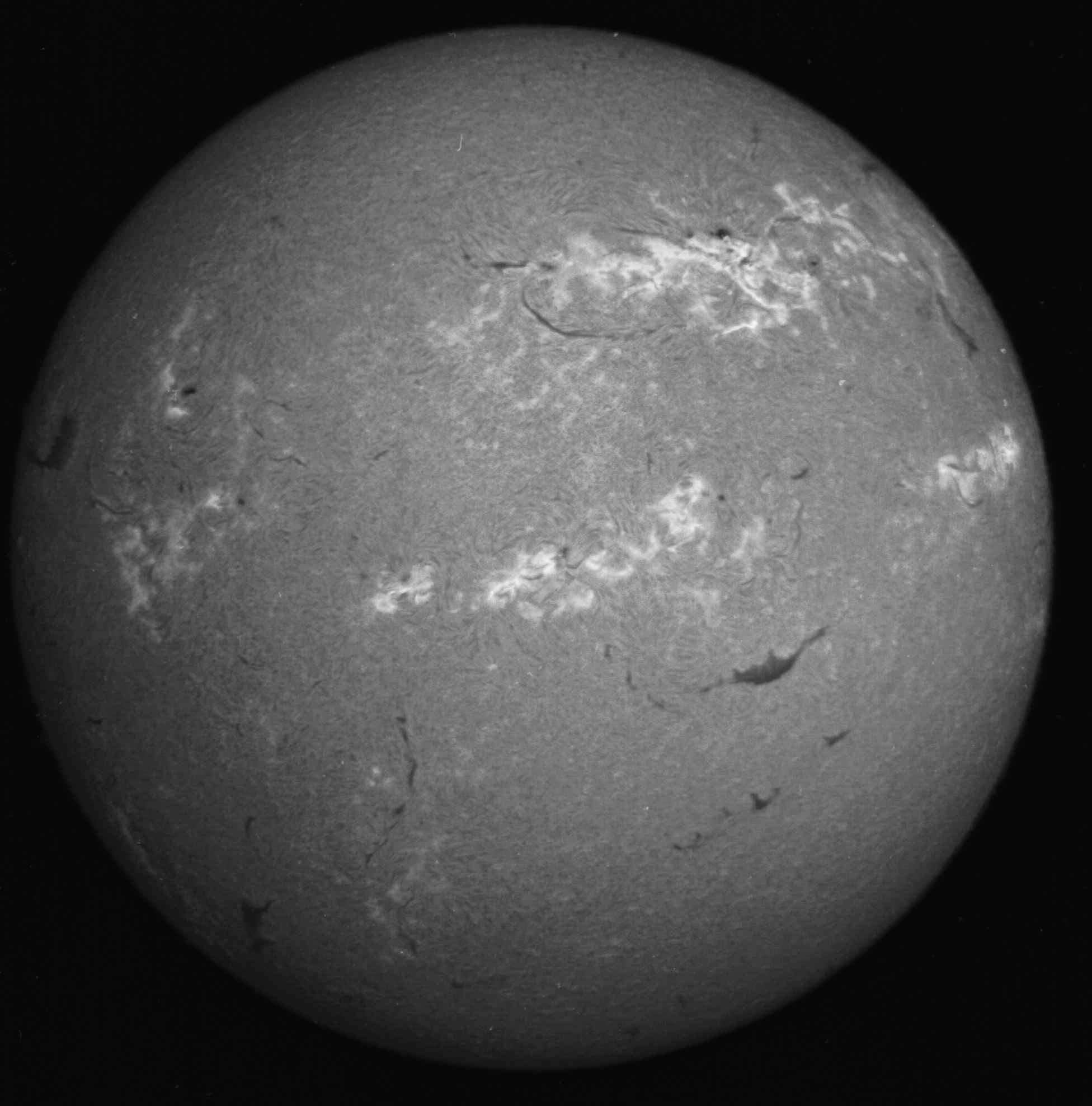 Mit monochromatischen Filtern (Bild links: CaII, Bild rechts: H-Alpha) sind die Fackeln über die ganze Sonne hinweg sichtbar. Diese Filter zeigen die Fackeln in den Schichten über der Photosphäre, in der Chromosphäre. Zur Unterscheidung von Weißlichtfackeln werden chromosphärische Fackeln "Plages" genannt.