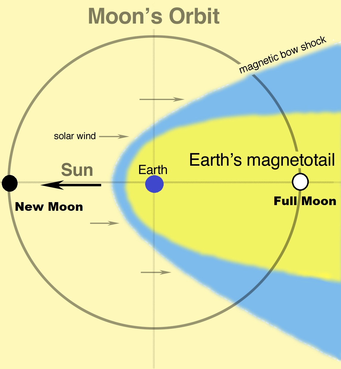 1. Der Mond befindet sich im magnetischen Schweif des Erdmagnetfelds.