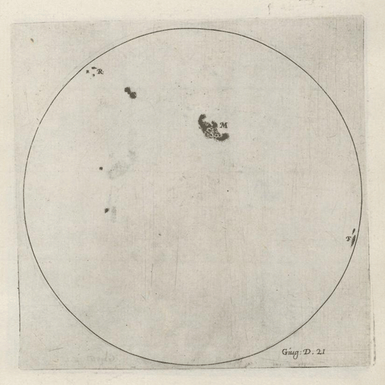 Die Zeichnungen von Galileo Galilei aus dem Jahr 1613 zeigen in der Animation die Sonnenflecken, die mit der Rotation der Sonne wandern.