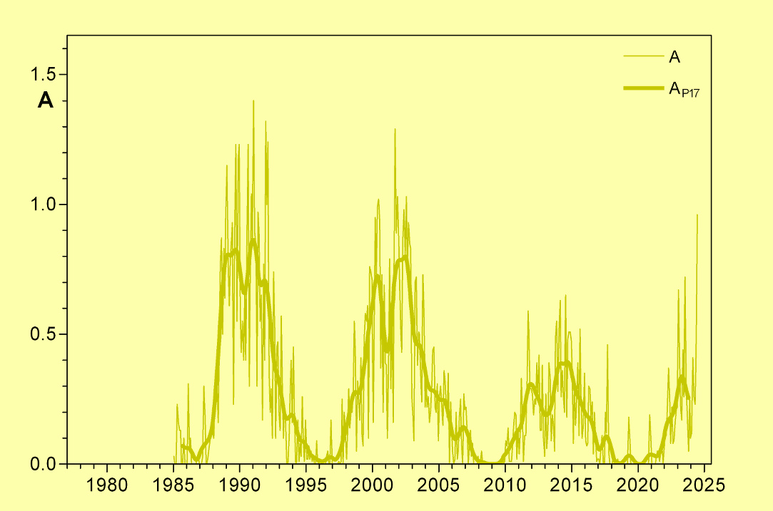 The left graphs show the current cycle, the right ones cycle 21 to